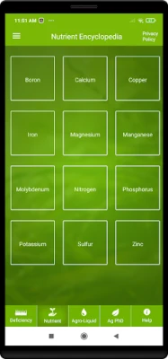 The Ag PhD Crop Nutrient Deficiencies app helps growers determine fertility issues in their fields. Users can search for deficiencies by nutrient type or browse photos of crops to find the image that most closely matches the fertility issue in their fields. Complete with photos and descriptions of numerous nutrient deficiencies in a wide variety of crops, this app gives users an additional tool to determine field problems and make fertility decisions.