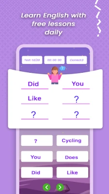 In sentence making mode: you'll face randomly shuffled words on the screen. Your task is to drag and drop these words to arrange them in the correct order, creating a meaningful and grammatical sentence.