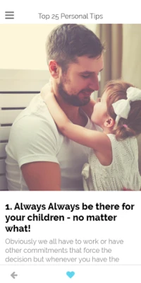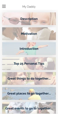 With categories and articles being added regularly, this easy to use simple My Daddy app addresses all key areas that a dad may experience through this time and beyond and is full of hundreds of hints, tips and suggestions as to best overcome some of the difficulties together that they could face along the way in one easy to access place. Scroll through the topics in each category and personalise by adding your own ideas important to you, under each section...!