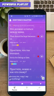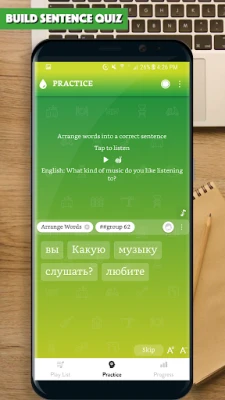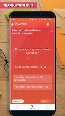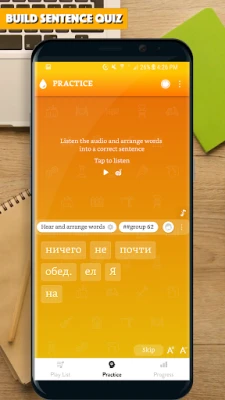 The app provided you with thousands of common sentences used in everyday life, with audio for each sentence. All the app's features are designed to help you learn to make Russian sentence and improve the main skills: Listening to a sentence, writing (making) a sentence correctly, speaking a sentence/a phrase correctly.