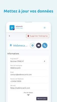 Webmecanik Pipeline est un CRM. Ce logiciel a pour but de récolter, stocker et organiser les informations concernant vos leads chauds, ainsi que gérer le planning de votre équipe. Le bon rythme et les bonnes informations, c’est l’assurance d’une croissance réussie !