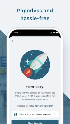 Take a picture of your purchase invoices, then simply generate and scan your barcode when you leave France. No more dealing with stamping and mailing multiple paper forms.